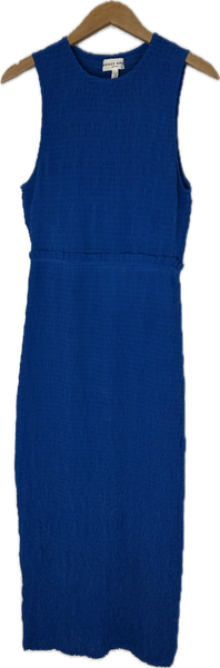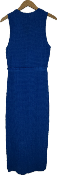 Blue Sleeveless Long Dress- featuring a scoop neckline and a fitted yet stretchy ruched silhouette