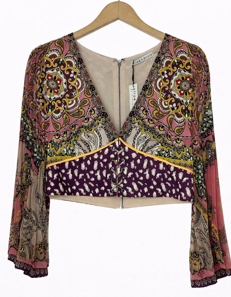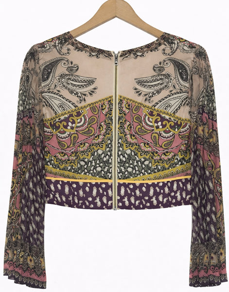 Abstract Paisley Print Long Sleeve Crop Top